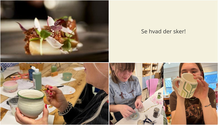 Søndag er der endnu en chance for at udfordre det kunstneriske inde på Kafé Krea med keramik. Her kan du male på forskellig keramik såsom skåle, krus og mere. Priserne starter fra 50 kr. til 450 kr. afhængig af det valgte keramik. Entre koster 50 kr. og dette beløb fratrækkes den endelige pris.
