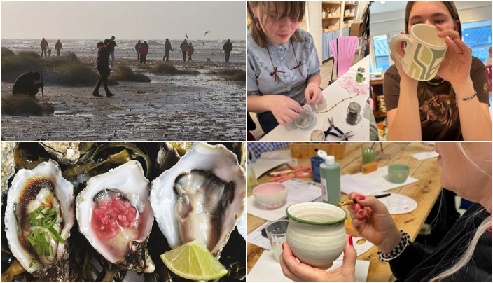 Er du klar til en weekend fyldt med naturoplevelser og kreativitet? Kom til Blåvand, hvor du kan deltage i en spændende jagt på rav, udfordre din kreativitet med keramikmaling, eller tilberede lækre østers i naturen.