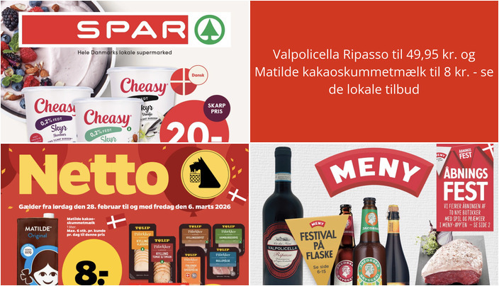 Netto tilbyder Matilde kakaoskummetmælk til en skarp pris af 8 kr. pr. liter. Der er max. 6 stk. pr. kunde pr. dag til denne pris. Tilbuddet gælder fra lørdag den 28. februar til fredag den 6. marts.